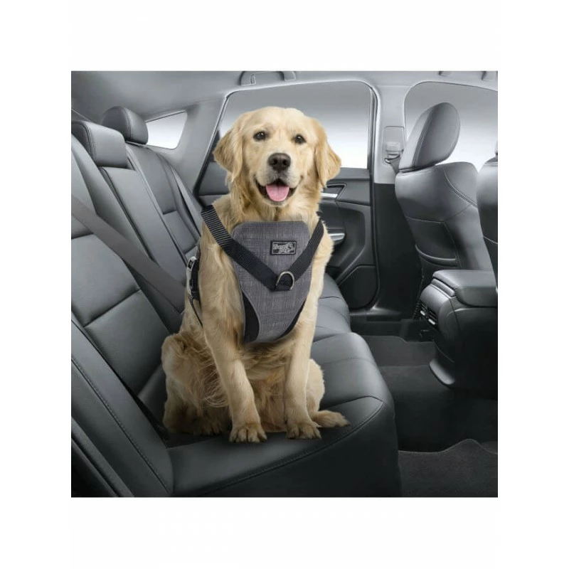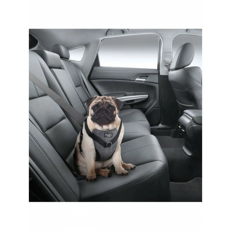 Le harnais Travel Dog proposé par la marque All For Paws permet de voyager avec votre chien en voiture en toute sécurité. Il peut également être utilisé comme harnais pour la promenade ou pour l’entrainement (2 points d’ancrage : un à l’avant et un à l’arrière). Confortable et facile à mettre en place grâce aux deux clips, il dispose d’un système anti-traction au niveau de la poitrine. Ses cinq points de réglage permettront de parfaitement adapter le harnais aux mesures de votre chien. La boucle de ceinture de sécurité amovible est compatible avec toutes les ceintures de sécurité des véhicules. Disponible en quatre tailles : S – M – L et XL.