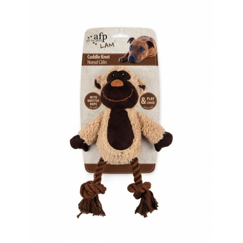 Ce jouet pour chien proposé par la marque All For Paws est recouvert de molleton doux et contient un siffleur intérieur prévue pour ses moments de jeu. Cet animal câlin à l’apparence d’un âne, d’un singe ou d’un mouton dispose de tous les atouts nécessaires pour attirer l’attention de votre compagnon pendant ses parties de chasse endiablées. La corde nouée, remplaçant les deux membres inférieur de l’animal, est une combinaison de nylon et de fibre synthétiques. Durable et résistante, la corde avec nœud permet de détartrer les dents de votre chien tout en s’amusant avec son jouet. Dimensions : 31 x 22,5 x 7,5 cm.