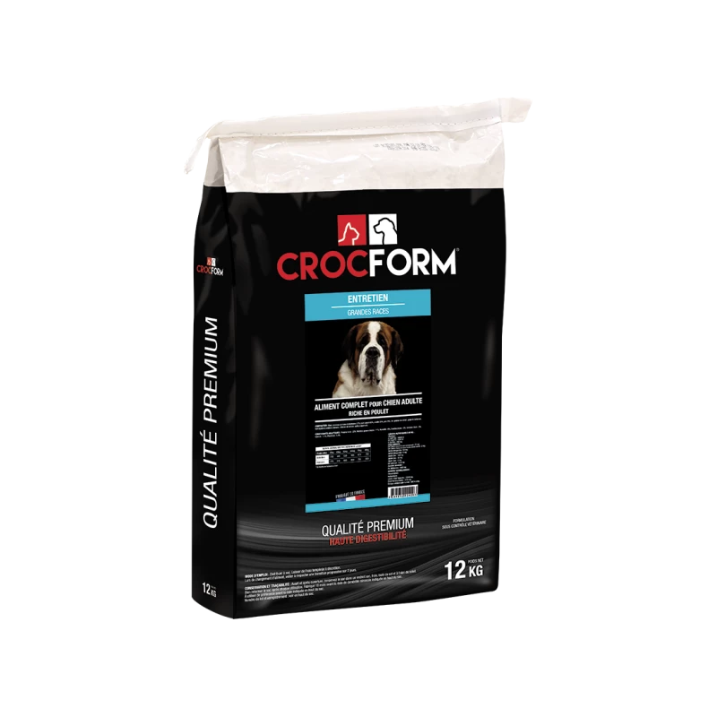 Ces croquettes d’origine française sont proposées par la marque CROCFORM dans sa gamme Premium comme un aliment complet pour les chiens adultes de toutes races qui ont des problèmes d’allergies ou d’intolérances alimentaires. Hautement digestible et croquante, la nourriture SANS CÉRÉALES au bon goût de poulet, de canard et de porc conviendra parfaitement comme alimentation quotidienne pour votre compagnon canin.