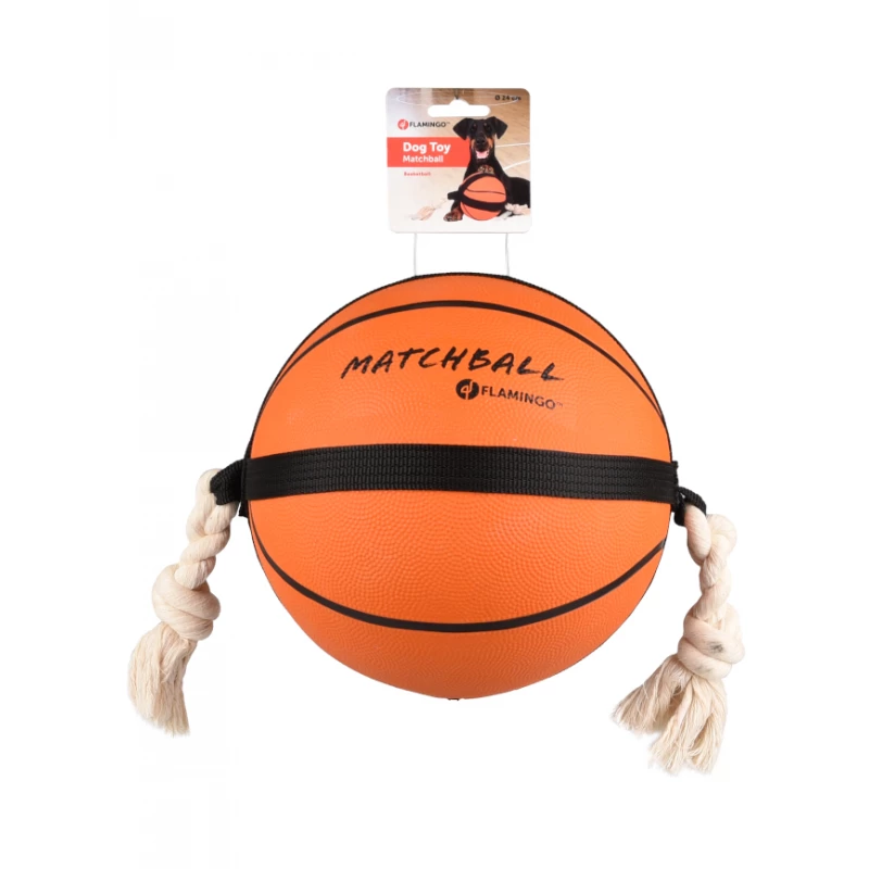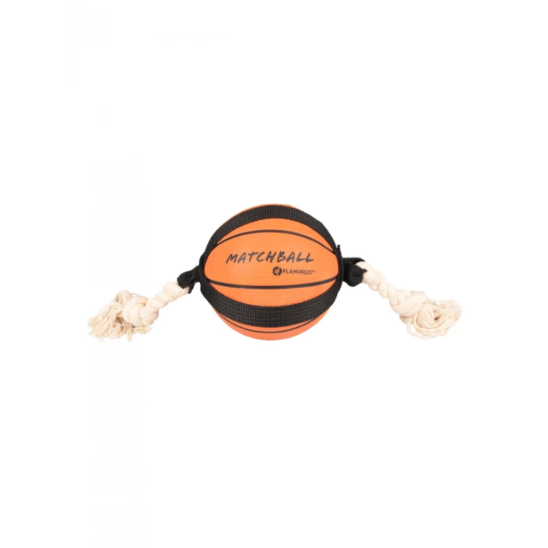 Cette balle de basket proposée par la marque Flamingo est entourée d’un tissu sur lequel est rattaché un noeud à corde à chaque extrémité. Facile à tenir et à lancer, cette balle résistante va permettre à votre chien de se défouler et de prendre du plaisir à jouer avec vous durant vos séances d’éducation endiablées ! Agréable à prendre à main et rebondissante, vous pourrez jouer au tir à la corde et au lancer/rapport durant des heures. Fabriquée à partir de matériaux non toxiques, cette balle robuste de qualité est idéale pour les jeux en plein air et convient pour l’apprentissage et les jeux de traction. Diamètres disponibles : 12.5 cm – 24 cm.