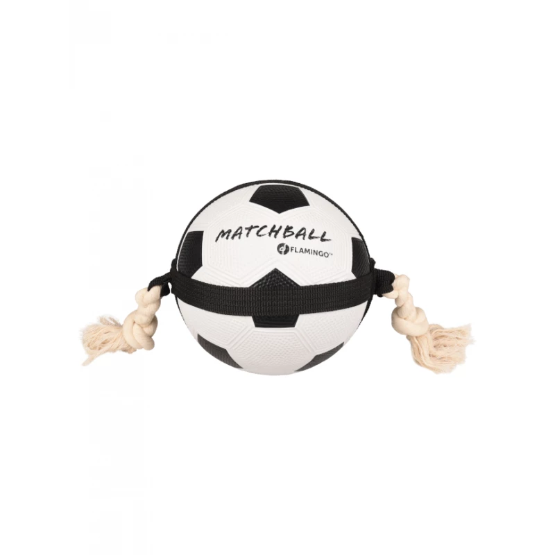 Cette balle de foot proposée par la marque Flamingo est entourée d’un tissu sur lequel est rattaché un noeud à corde à chaque extrémité. Facile à tenir et à lancer, cette balle résistante va permettre à votre chien de se défouler et de prendre du plaisir à jouer avec vous durant vos séances d’éducation endiablées ! Agréable à prendre à main et rebondissante, vous pourrez jouer au tir à la corde et au lancer/rapport durant des heures. Fabriquée à partir de matériaux non toxiques, cette balle robuste de qualité est idéale pour les jeux en plein air et convient pour l’apprentissage et les jeux de traction. Diamètres disponibles : 12.5 cm – 19 cm – 22 cm.
