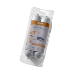 La saucisse de viande au bon goĂ»t d’autruche est une friandise complète pour chien adulte. FabriquĂ©e Ă partir d’un processus de fourrage Ă froid, cette collation naturellement nutritive et savoureuse est idĂ©ale pour les intolĂ©rances alimentaires, les rĂ©gimes d’exclusion et les allergies. FormulĂ©e sans gluten et sans cĂ©rĂ©ales, sa recette Ă©quilibrĂ©e contient de la patate douce comme seule source de glucide (20%) et de l’autruche comme source monoprotĂ©ique (80%). Faible en calorie et en amidon, la patate douce est reconnue pour sa digestibilitĂ© et son apport en glucides complexes, fibres, minĂ©raux et vitamines.