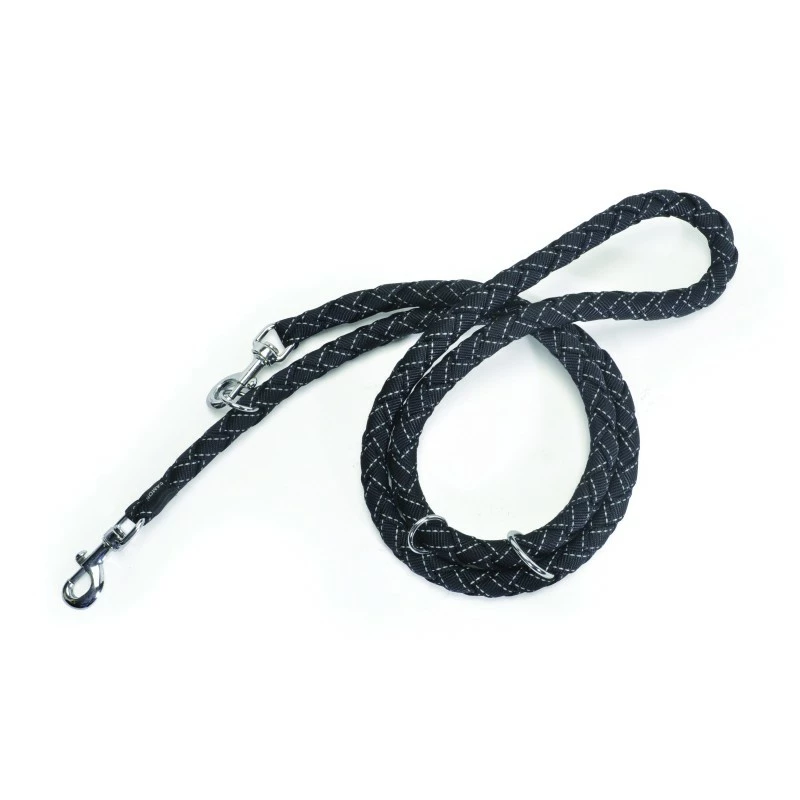 Inspirée de la corde d’escalade, cette laisse est proposée par la marque Camon comme un accessoire d’entrainement pour chiens. Résistante et légère, elle est fabriquée à partir de nylon tressé et de coutures réfléchissantes et permet d’assurer la sécurité et la visibilité de votre animal lors de promenades nocturnes. Réglable grâce à ces anneaux métalliques pratiques, elle dispose de trois points d’attache répartis sur la longueur de la corde et d’un mousqueton chromé à chaque extrémité pour une attache facile et fiable. Idéale pour adapter la laisse en fonction de chaque situation rencontrée !