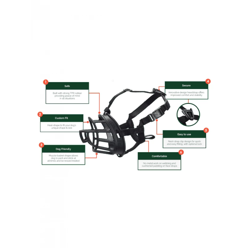 De plus, elle est fabriquée avec du caoutchouc thermoplastique durable (TPR) résistant avec une boucle au collier et une sangle à passer sur la tête pour un déplacement sûr et sécurisé. Il est également possible d’ajuster sur mesure la muselière pour que le chien soit à l’aise en permanence grâce à la thermoformation. C’est un accessoire utile pour aider à la rééducation des comportements agressifs. Fonctionne aussi bien pour une utilisation occasionnelle que pour une utilisation quotidienne.