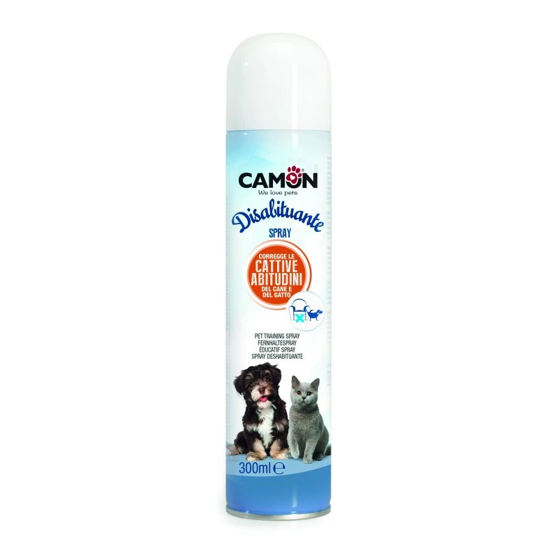 Ce spray répulsif proposé par la marque Camon permet d’éduquer votre animal en l’aidant à se défaire de ses mauvaises habitudes. Diffuser ce produit aux endroits sur lesquels votre chien ou votre chat a pris l’habitude de réaliser ses comportements indésirables. Idéal pour protéger votre habitation (portes, recoins de pièces, hall d’entrée etc.) et votre mobilier (pieds de fauteuils, tables, canapés, boiseries, tapis, rideaux, etc.) des griffades, des mordillements ou des marquages urinaires.
